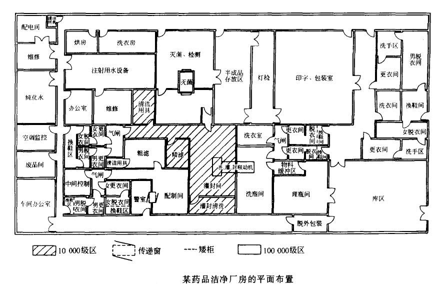 1、应满足产品生产工艺和空气洁净度等级的要求。通常是顺应产品生产流程进行布置,尽量做到人流、物流的路线短捷,设备布置紧凑,并应符合有关的消防安全、卫生规定。